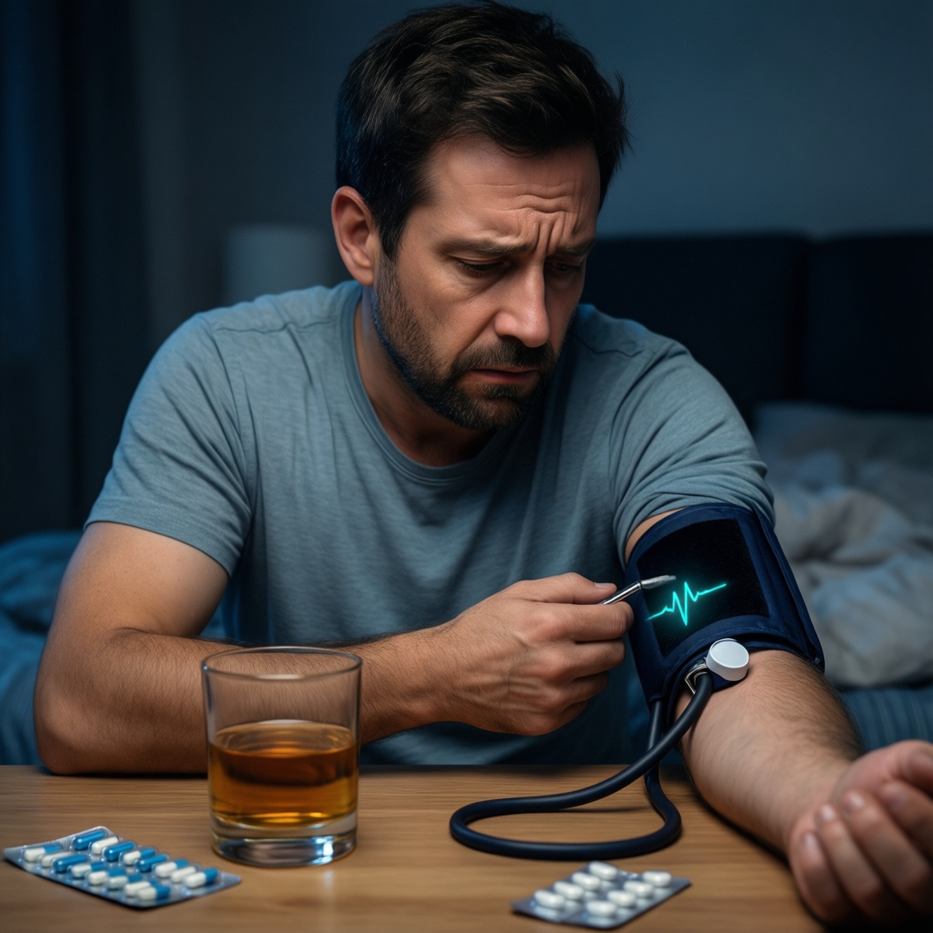 Дополнительно этанол ухудшает качество сна и усиливает храп/эпизоды апноэ у предрасположенных людей, а это повышает ночную и утреннюю нагрузку на сосуды. В быту это выглядит так: "выпил немного - уснул быстро", но проснулся раньше, сон поверхностный, утреннее давление выше обычного.