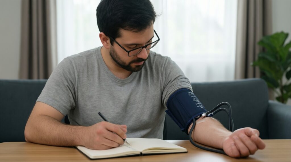 Если у врача цифры выглядят нормальными, но дома/на работе давление повторно повышается, это типичный сценарий маскированной гипертонии. В дневнике особенно важны условия: стресс, недосып, алкоголь, соль, обезболивающие/сосудосуживающие капли, тренировки.
